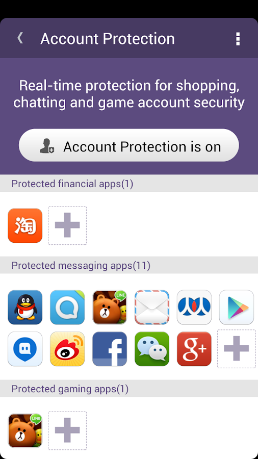 >>Account protection (premium): real-time protection for financial, online shopping, payment, social chat and games account security